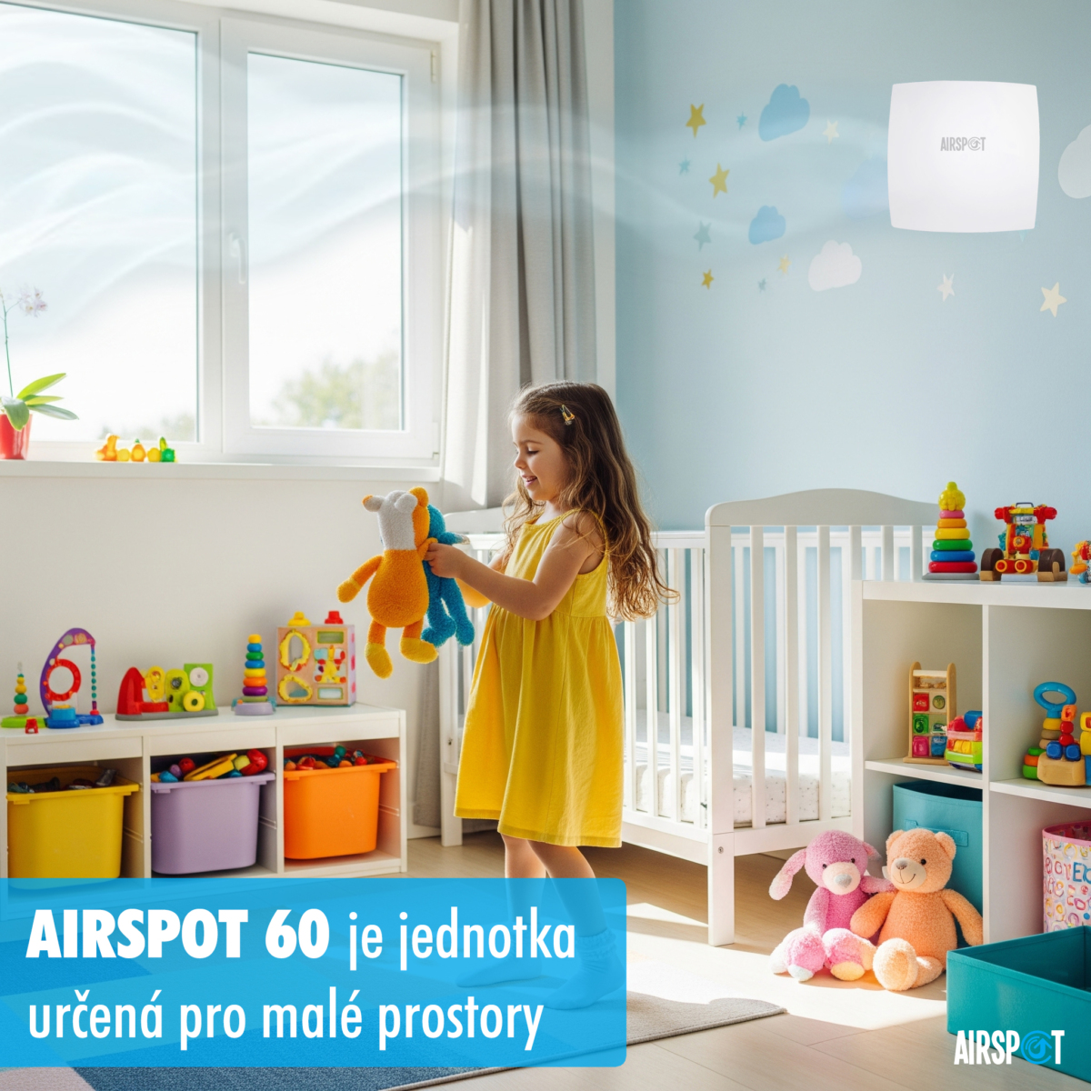 Základní jednotka Airspot 60 je určená do menších prostor jako jsou dětské pokoje, ložnice a koupelna.