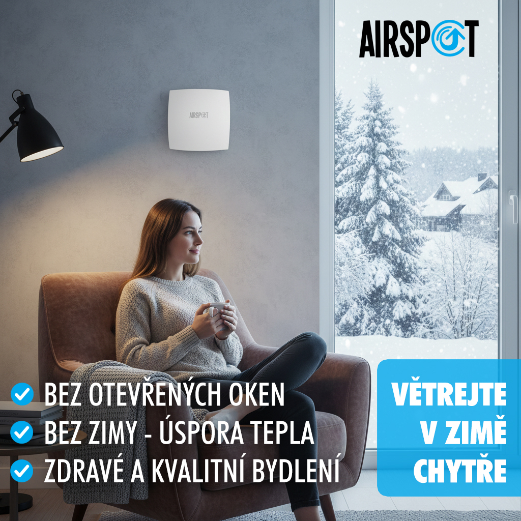 S decentrální rekuperací Airspot si zajistíte zdravé prostředí bez zimy, plísní a vysokých účtů za topení. Je čas přestat větrat "postaru" a začít s Airspotem dýchat chytře!